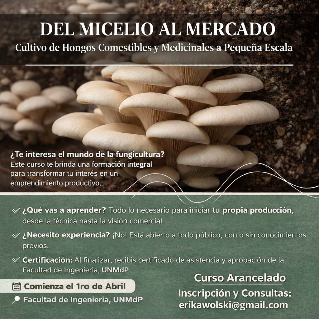 DIRIGIDO A: Personas con o sin experiencia previa que busquen una formación integral para iniciar un emprendimiento de producción de hongos comestibles y/o tengan interés en iniciarse en la fungicultura.